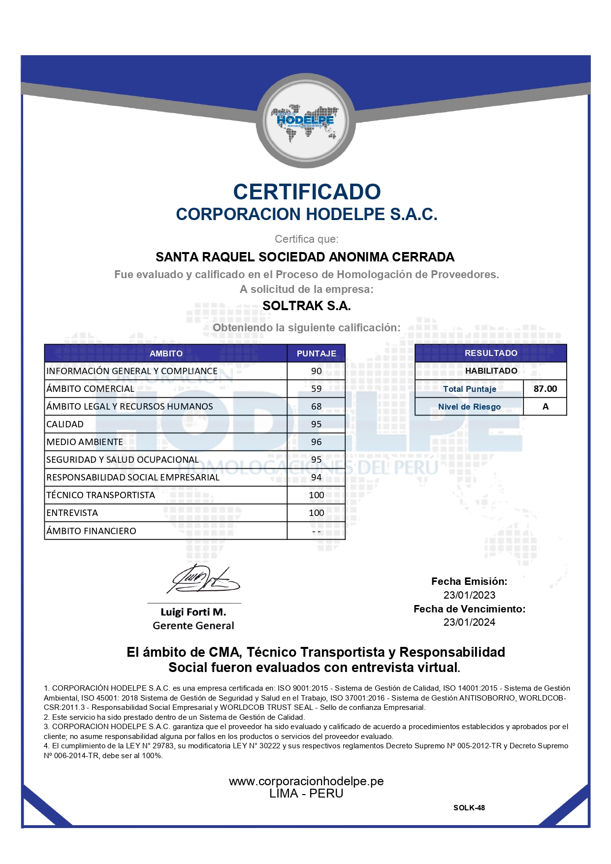 A través de los años hemos evolucionado como empresa perfeccionando nuestra oferta de servicio,trabajando bajo la premisa de que la calidad, seguridad y cuidado del medio ambiente de hoy, es garantía del futuro.